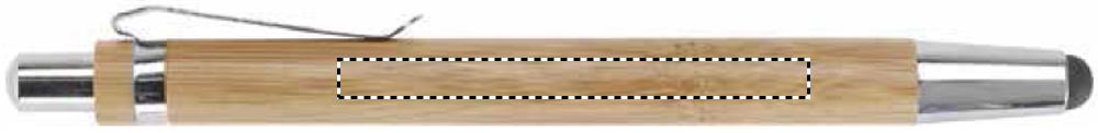 Druckkugelschreiber/Stylus aus Bambus mit glänzendem Chromelementen. Blaue Tinte. Bambus ist ein natürliches Produkt, es kann daher zu leichten Abweichungen in Farbe, Dekor und Maßen kommen.