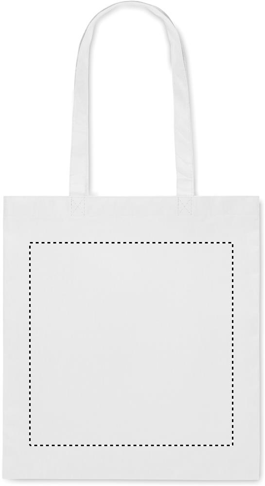Einkaufs- oder Strandtasche aus RPET-Non Woven mit Seitenfalz und langen Tragegriffen. 80 g/m².