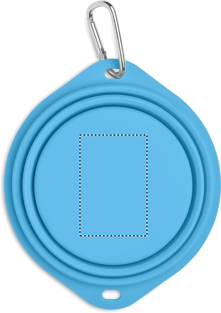 Faltbarer, transportierbarer Trink- oder Futternapf für Haustiere aus Silikon mit Karabiner. Füllmenge: 350ml. Der Karabiner ist NICHT als Sicherung beim Klettern geeignet.