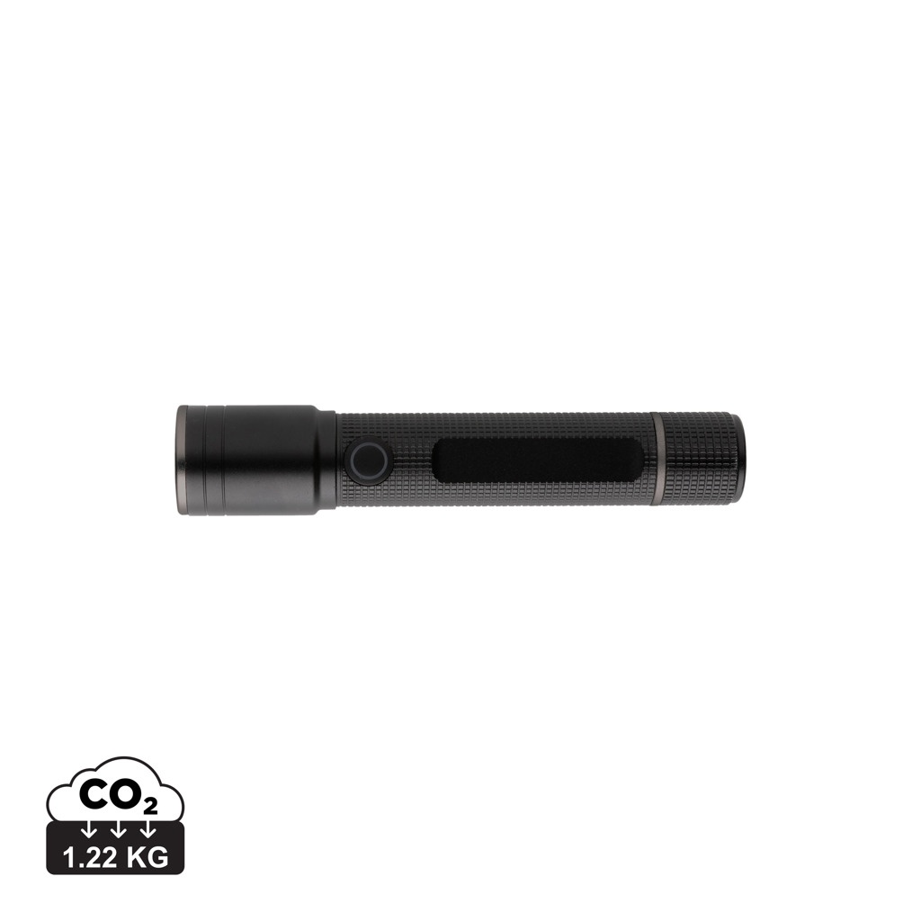 Gear X Taschenlampe aus RCS recycelt. Aluminium mit USB-Akku, Schwarz