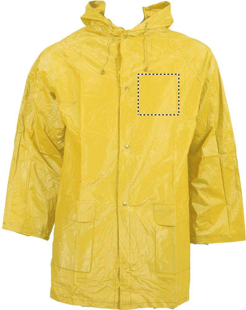 Regenjacke mit Kapuze. Mit Druckknöpfen. PVC.