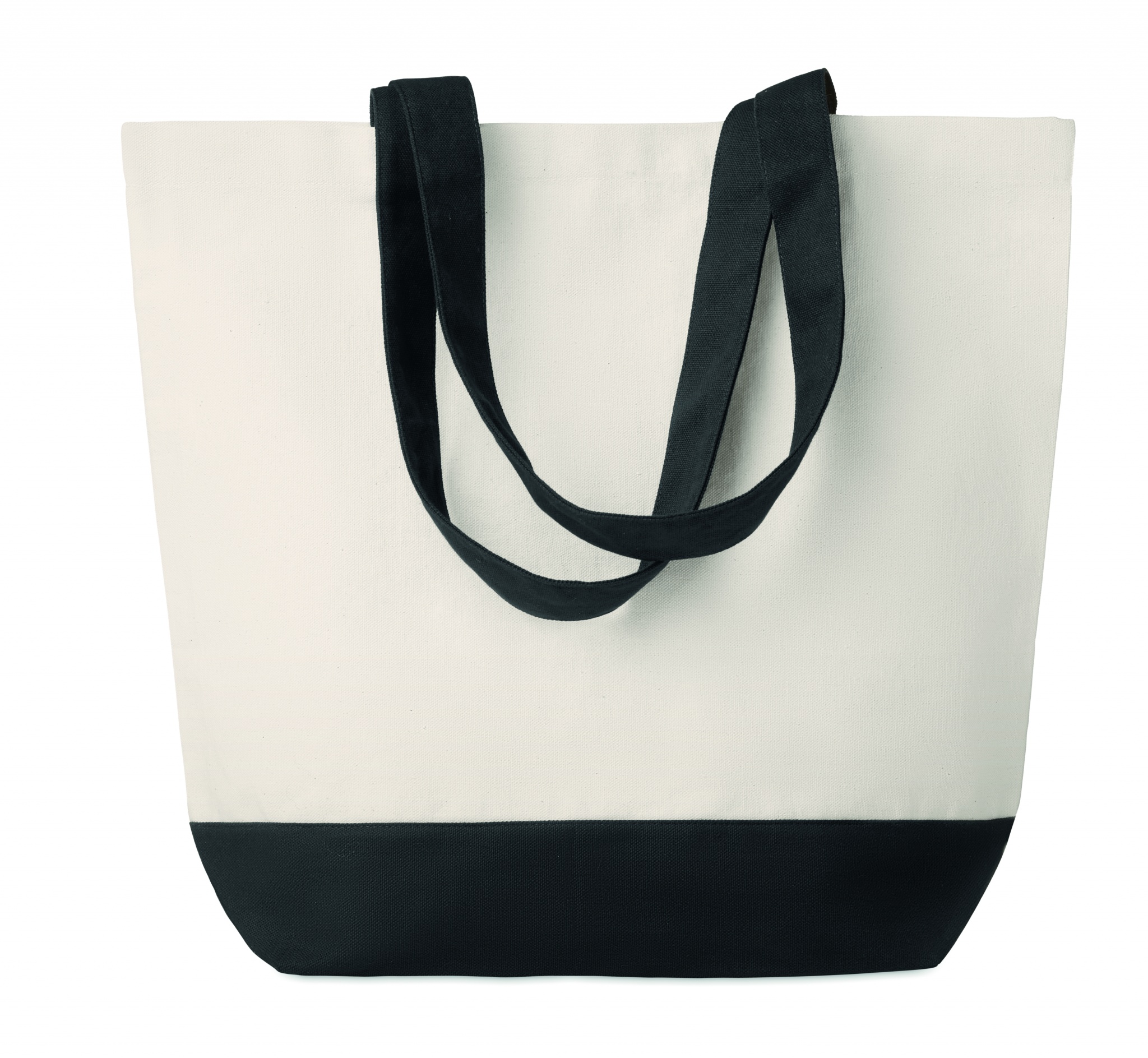 Shopping Tasche aus 280g/m² Canvas. Farbig abgesetzter Boden und passende Tragegriffe. Kleines Innenfach.