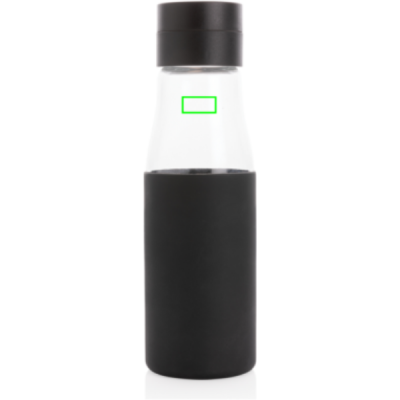 Logotrade Werbeartikel das Foto: Ukiyo Trink-Tracking-Flasche aus Glas mit Hülle