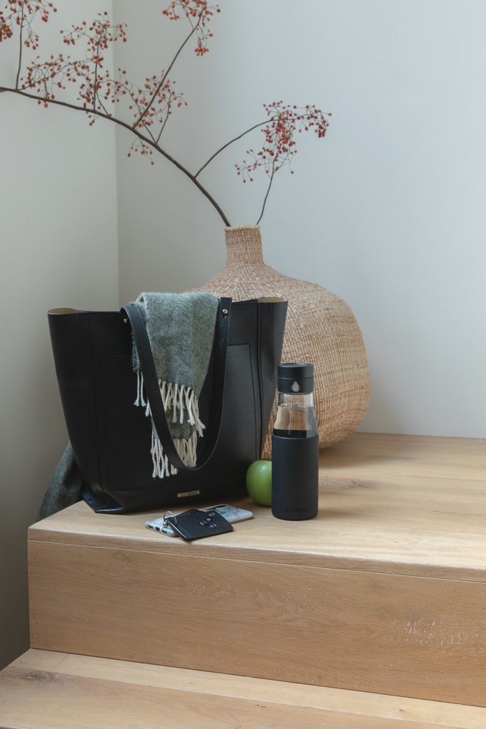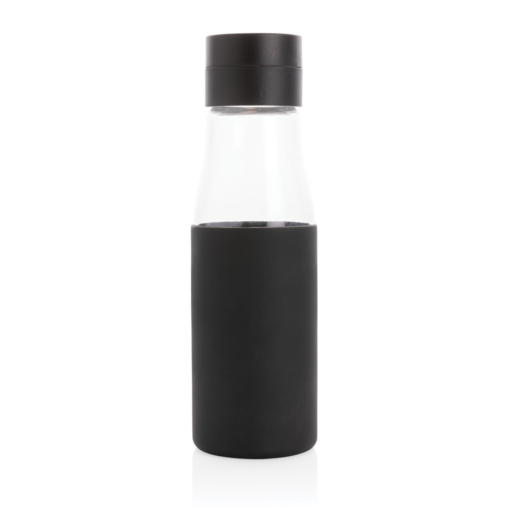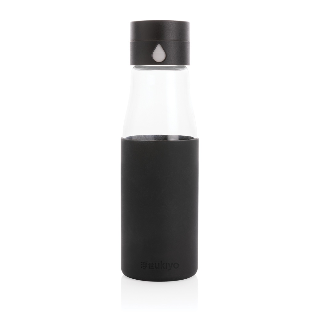 Ukiyo Trink-Tracking-Flasche aus Glas mit Hülle, Schwarz