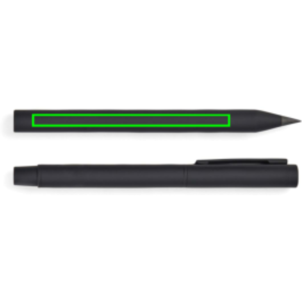 Dieses moderne und elegante Set enthält zwei Stifte: einen Infinity-Stift und einen klassischen Kugelschreiber mit Kappe und Clip. Die Stifte sind aus RCS-zertifiziert recyceltem Edelstahl gefertigt und verfügen über eine Gummibeschichtung für einen angenehmen Griff und eine matte Oberfläche, die sowohl Stil als auch Funktionalität bietet. Beide Stifte haben ein ausgewogenes Gewicht, das für Stabilität und müheloses Schreiben sorgt. Der Infinity-Stift bietet nahezu grenzenloses Schreiben. Der Kugelschreiber verfügt über eine feine 1mm-Spitze und ermöglicht ein gleichmäßiges und flüssiges Schreiben mit blauer Dokumententinte, die für bis zu 1200m. Die RCS-Zertifizierung (Recycled Claim Standard) garantiert, dass die gesamte Lieferkette der recycelten Materialien zertifiziert ist. Der Gesamtanteil an recyceltem Material basiert auf dem Gesamtgewicht des Produkts. Dieses Produkt enthält 52% RCS-zertifiziertes recyceltes Aluminium und 10% RCS-zertifizierten Edelstahl.