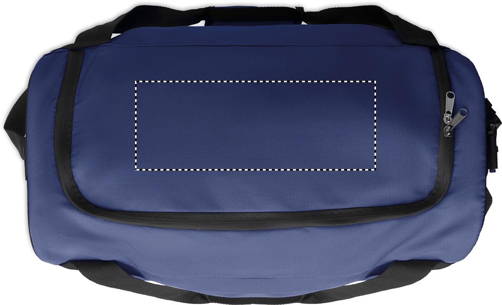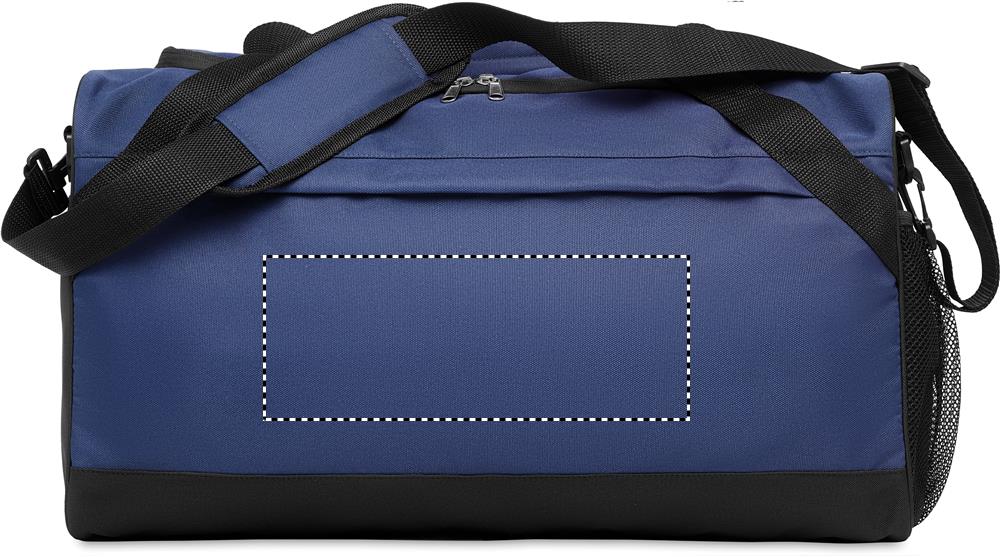 Sport or travelling bag in 600D RPET with large zippered front pocket, inside zippered pocket and adjustable and detachable shoulder strap.