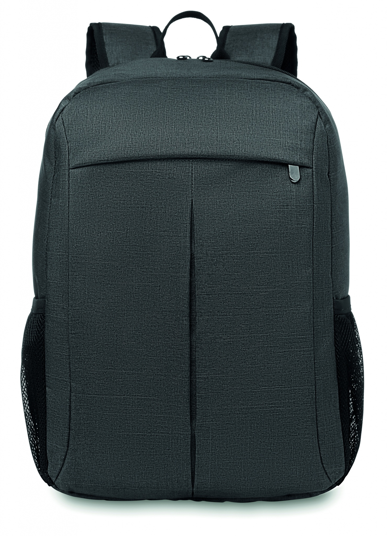 15 Inch computer backpack in 360D 2 tone polyester. Includes one internal 15 inch laptop compartment and one main front part with zipper pocket. Padded back and shoulder straps. Additional pocket for Tablet compartment. Trolley holder back side.