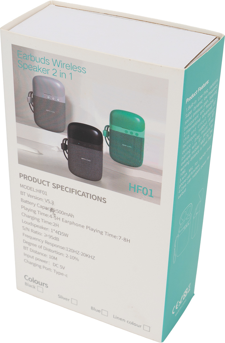 Products All products Bluetooth Speaker HF01 with Built-in Earbuds 2 in 1