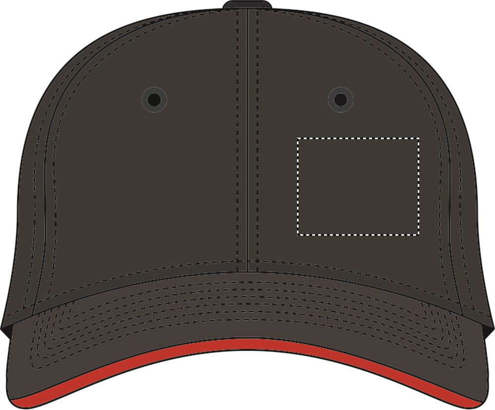 6 panel baseball cap in brushed heavy cotton 270 gr/m2 with adjustable metal buckle with tuck-in slit. With coloured sandwich peak. Size 7 1/4.
