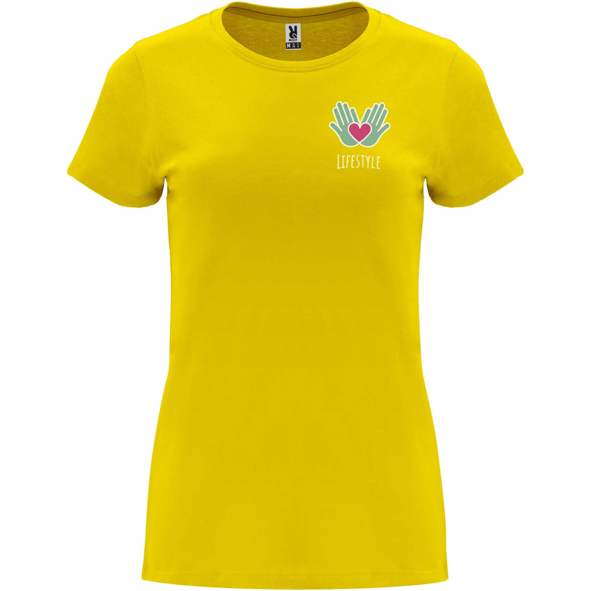 Fitted short-sleeve t-shirt for women. 1x1 ribbed crew neck. Reinforced covered seams in collar. Removable label.
