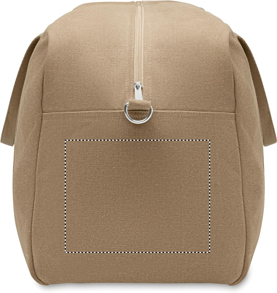 Duffle travel bag in recycled 450 gr/m² fabrics (60% recycled cotton and 40% recycled polyester) with adjustable and detachable cotton strap.
