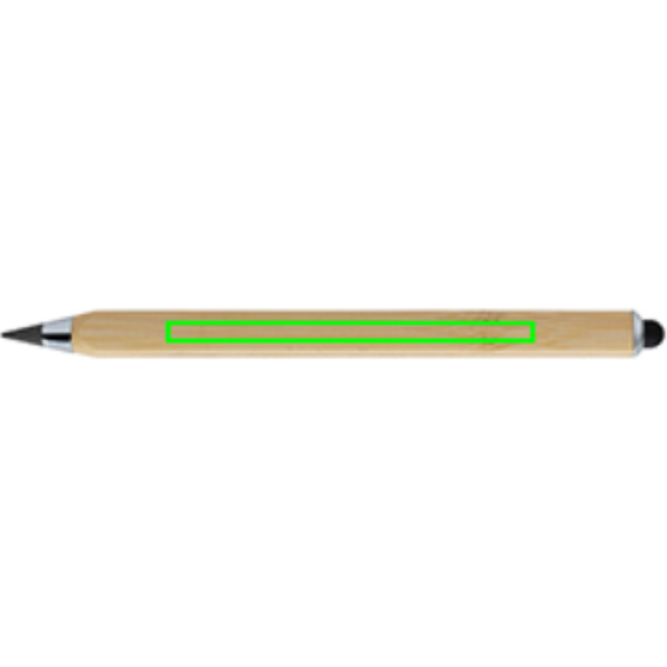 Modern infinity pen made with FSC® 100% certified bamboo. Triangle shaped body, one side with CM indication and one side with Inches. Traditional wooden pencils write only up to around 200 metre but this Tree free infinity pencil, has a writing length of up to around 20000 metres using a graphite tip to produce a graphite line. Not only does it write like a pencil, but the markings can be erased. It works by leaving a graphite line on paper just like a regular traditional wooden pencil but it wears down so slowly, that it should outlast up to 100 traditional wooden pencils! With touch tip to operate mobile device. Packed in FSC® mix packaging.