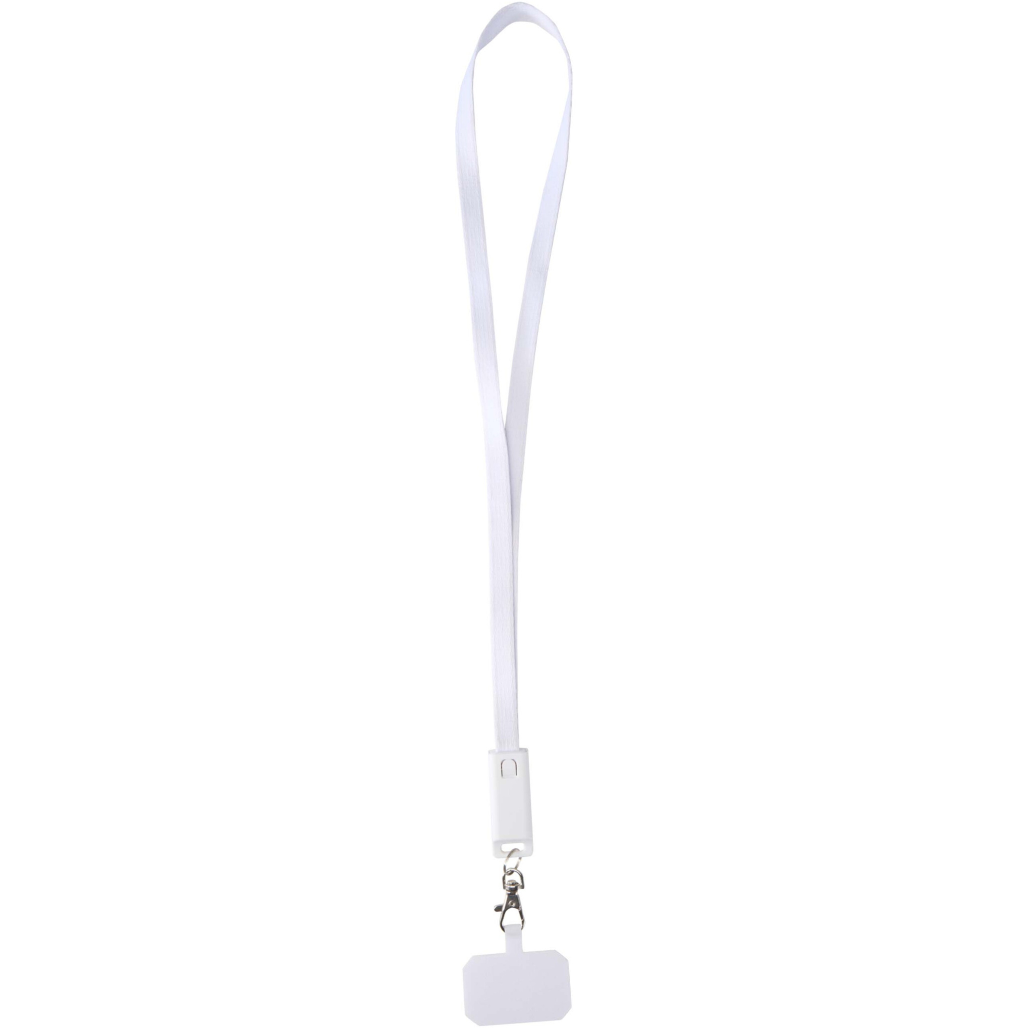 Franz recycled plastic smartphone lanyard with built-in data sync and 65W fast charge 5-in-1 cable, White