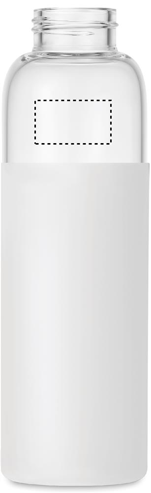 Glass bottle with silicone pouch and bamboo lid with cotton wrist loop. Not suitable for carbonated drinks. Leak free. Capacity: 500 ml. Bamboo is a natural product, there may be slight variations in colour and size per item, which can affect the final decoration outcome.