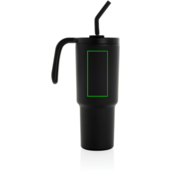 The most popular mug now suitable for perfect 360 round body printing. A 900ml tumbler designed for eco-friendly hydration, made with recycled materials. Whether you're working, exercising, or travelling, this tumbler is your perfect companion. The innovative lid features a rotating cap with three positions: a spill-resistant straw opening, a sipping spout, and a fully sealed lid. The ergonomic handle with comfort-grip inserts ensures easy carrying, and the slim base fits most car cup holders. Hand wash only. BPA-free. Capacity: 900ml. Includes FSC®-certified kraft gift packaging. Total recycled content: 36% based on total item weight.