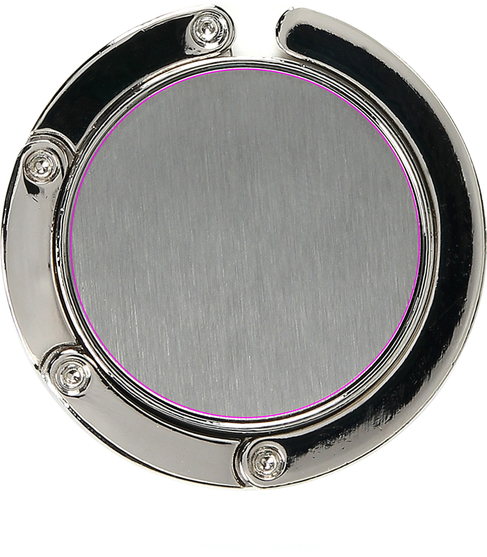A perfect accessory for every woman! Keep your handbags off the dirty ground with the elegant handbag holder. We suggest to laser engrave your logo onto the silver circular design. Single packed in a cardboard box.