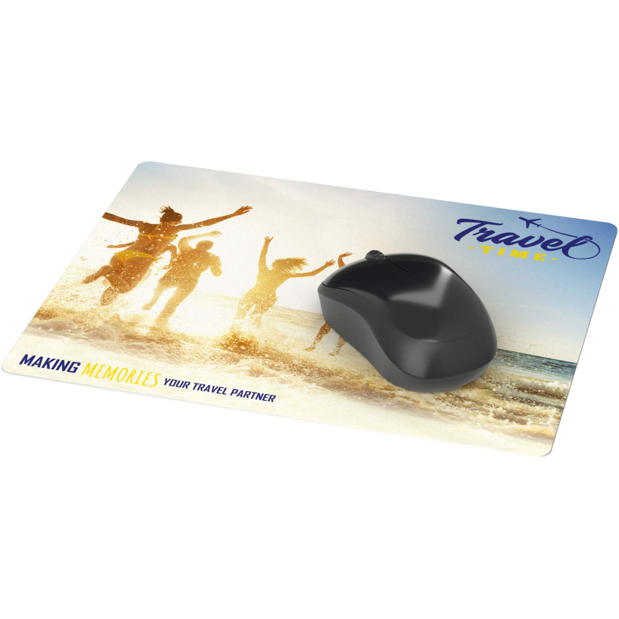 Transform any workspace with the Lumin full-colour mouse mat. Designed for carrying full colour designs, this hardwearing mouse mat offers edge-to-edge print, backed with a non-slip base. The smooth surface allows for precision tracking, ideal for use in the office or for gaming. Fully recyclable. Size: 24 x 19 cm. Made in the UK.