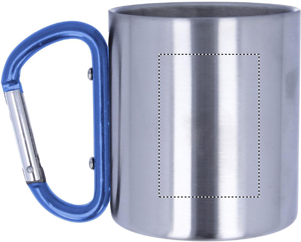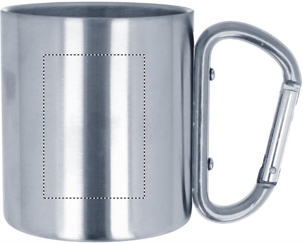 Double wall stainless steel mug, with carabiner handle. Capacity: 220 ml.