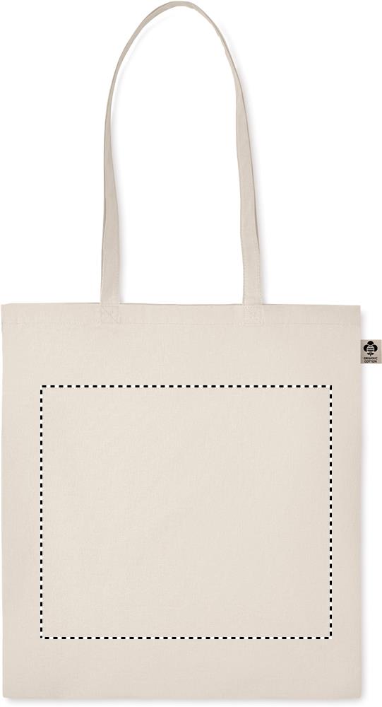 Organic cotton shopping bag with long handles. A classic tote bag design made to carry your daily groceries or other items. Carry the bag in your hands or over your shoulder with the long handles. Made from 100% natural organic cotton 140 gr/m².