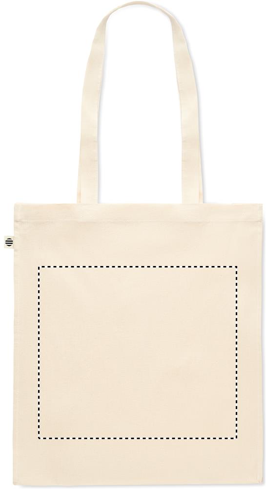 Organic cotton shopping bag with long handles and gussets. 140 gr/m².