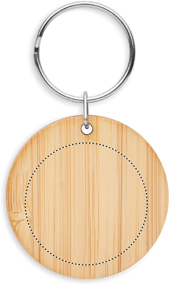 Round bamboo key ring. Bamboo is a natural product, there may be slight variations in colour and size per item, which can affect the final decoration outcome.