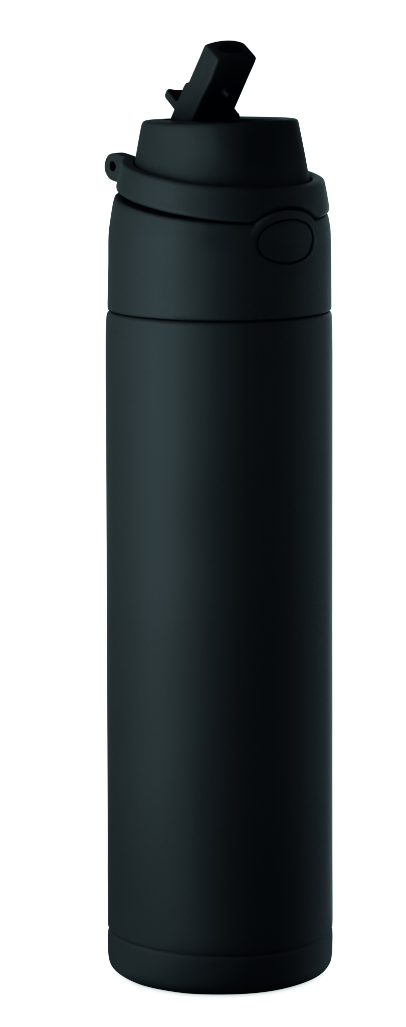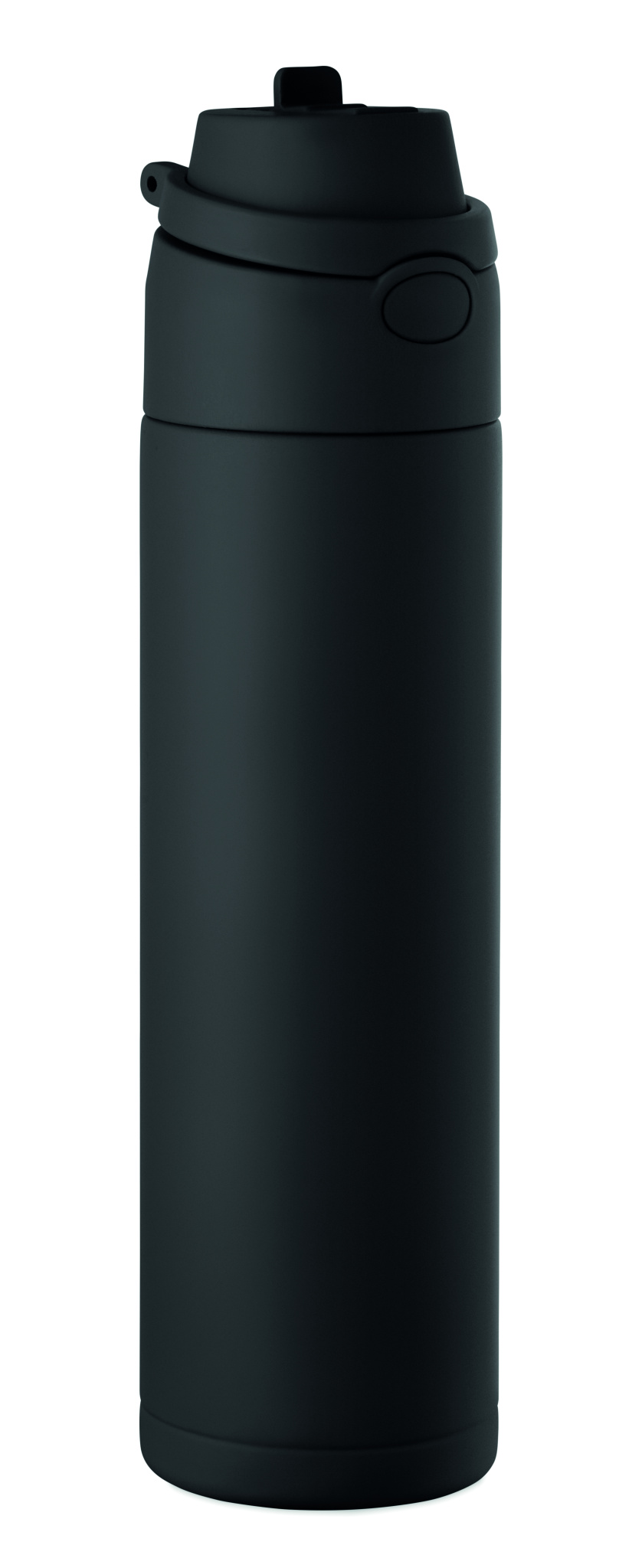 Single wall recycled stainless steel (90% recycled stainless and 10% stainless steel) bottle. Features 2-in-1 straw and sip PP lid with handle. Leak-free. Capacity: 650 ml.