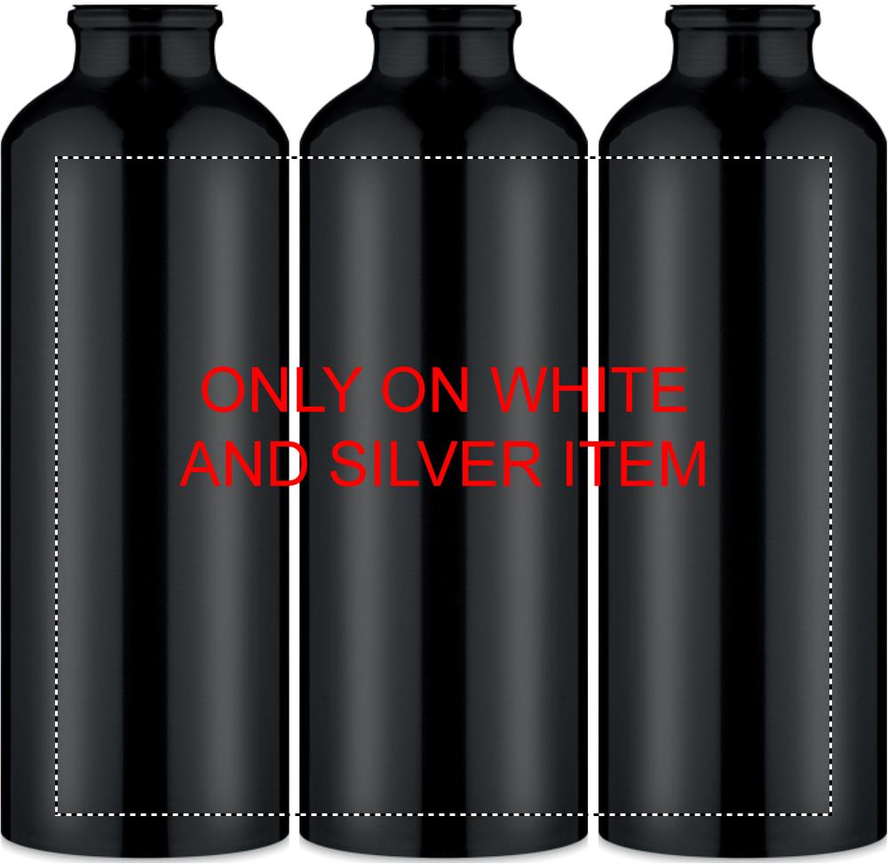 Single wall aluminium bottle with carabineer. Capacity: 750 ml. The carabiner is not for climbing (non professional use). Sublimation print available on white item only. Leak free.
