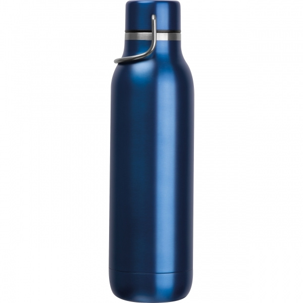 Double-walled stainless steel drinking bottle with a carrying handle on the lid and a capacity of 600 ml. Your logo is applied to the bottle using laser engraving.