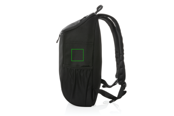 This deluxe Swiss Peak AWARE™ cooler backpack can go wherever a cool drink or meal is needed. The backpack features a wide opening for easy access to your food and drinks. A zippered top pocket ensures you can put all your necessities away. Fits up to 6 bottles or 25 cans. With AWARE™ tracer that validates the genuine use of recycled materials. Each cooler backpack is made with 13.9 PET bottles. 2% of proceeds of each AWARE™ product sold will be donated to Water.org. Composition exterior 100% recycled polyester. Lining in PEVA.
