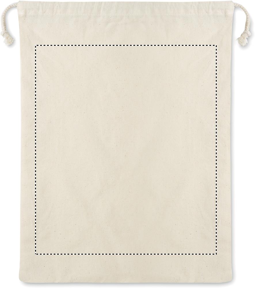 Korduvkasutatav toidukott. Üks pool on puuvillast (140gr/m²) ja teine võrkpuuvillast (110gr/m²). Pingutusnööriga sulgemine.
