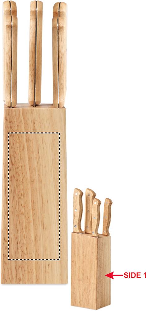 Puidust nugade komplekt. Sisaldab alushoidjat ja 5 nuga: kokk, leib, viilutamine, multifunktsionaalne ja lõikamine. Roostevaba teras puidust käepidemega.