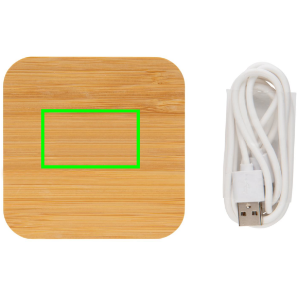 5 W juhtmevaba laadija, mis on valmistatud 100% FSC® sertifitseeritud bambusest. 150 cm 100% RCS taaskasutatud TPE mikro-USB kaabliga. Ühildub kõigi QI-toega seadmetega, nagu Android uusim põlvkond, iPhone 8 ja uuemad. Sisend: 5V/2A; Juhtmeta väljund: 5V/1A - 5W.; Toode ja tarvikud 100% PVC-vaba. Pakitud FSC®mix pakendisse.