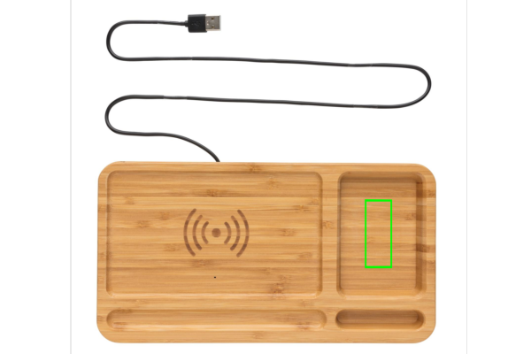 Logo trade reklaamkingituse pilt: Bambusest lauaorganisaator 10W juhtmevaba laadija