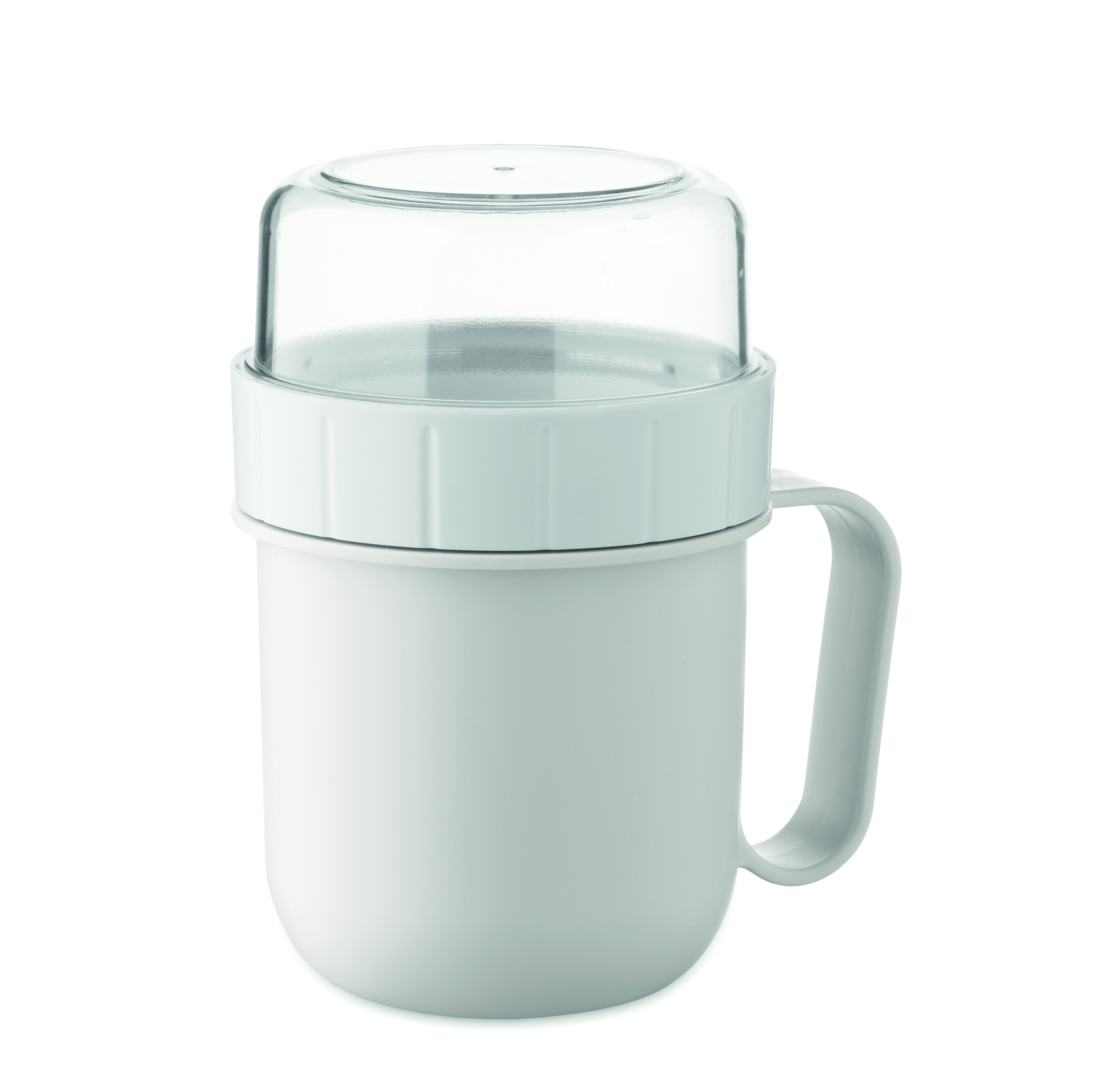 Mugav viis hommikusöögi kaasa võtmiseks. PP plastikust tass PS kaanega. Koosneb kahest eraldi mahutist koostisosade eraldi hoidmiseks. Mahutavus: 450 ml ja 160 ml. Lekkekindel.