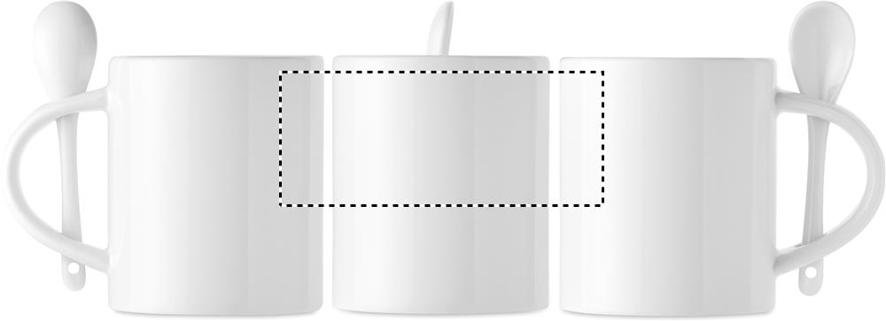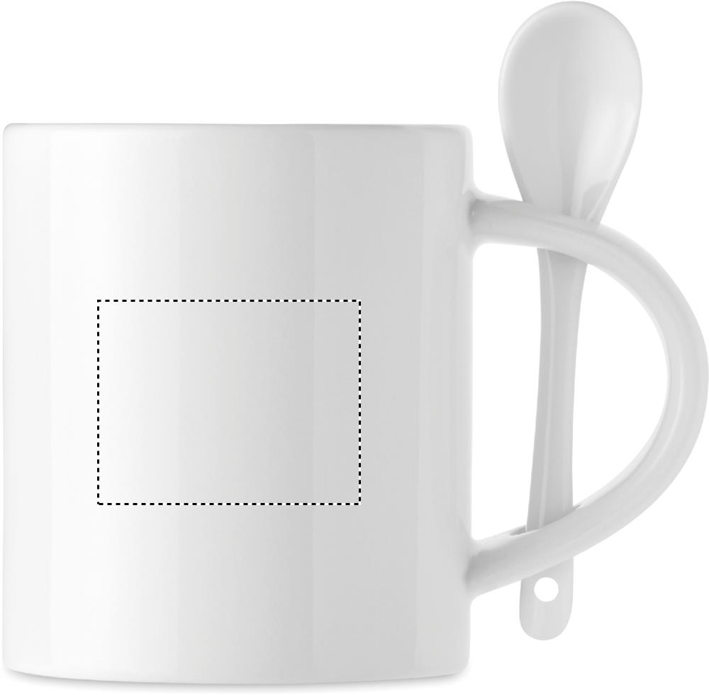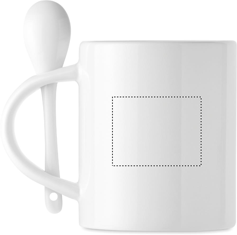 Spetsiaalse kattega keraamiline kruus ja lusikas sublimatsioonitrüki jaoks. Lusikat hoitakse käepidemes. Mahutavus: 300 ml.