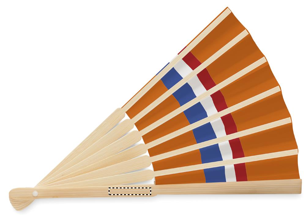 Manuaalne bambusest käsiventilaator lipukujundusega paberkangal.