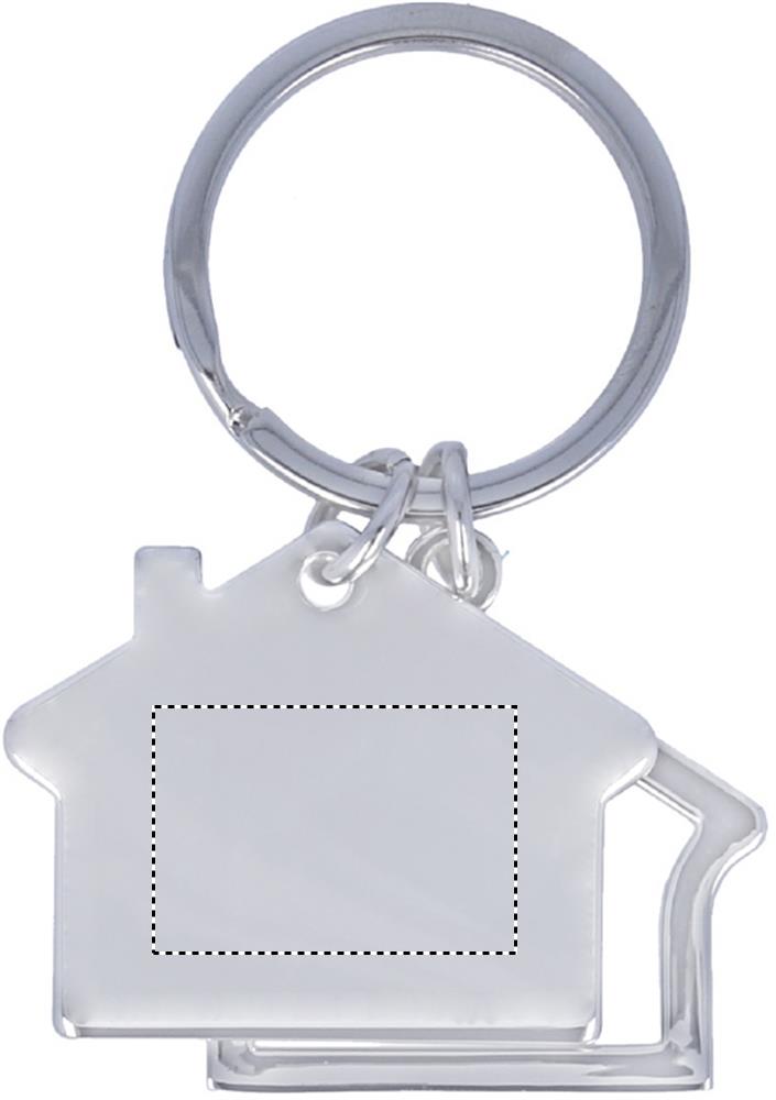 Majakujuline metallist võtmehoidja. Eraldi pakitud valgesse pappkinkekarpi.