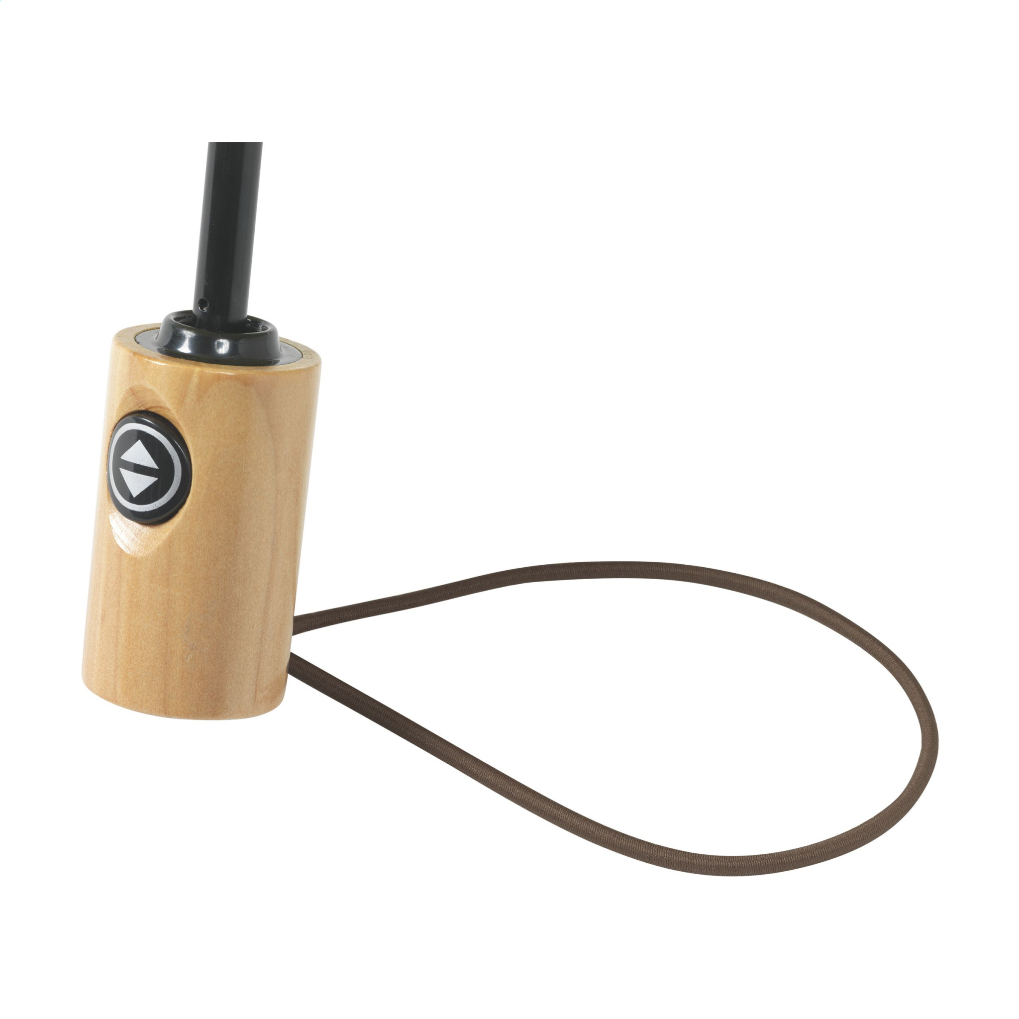 Vau! Kokkupandav vihmavari automaatse avamis- ja sulgemismehhanismiga. Tarnitakse RPET 190T pongee polüesterkattega. Sellel vihmavarjul on ka roostevabast terasest vars ja raami puidust käepide, elastne kandeaas ja takjakinnisus. Pikkus kokkupanduna: 28 cm. RCS-sertifikaadiga. Kokku taaskasutatud materjal: 16%.