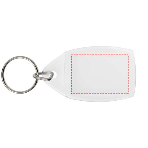 Läbipaistev võtmehoidja metallist poolitatud võtmehoidjaga. Metallist silmusrõngas pakub lamedat profiili, mis sobib ideaalselt postitamiseks. Trükilehe mõõdud: 3,5 cm x 2,4 cm.