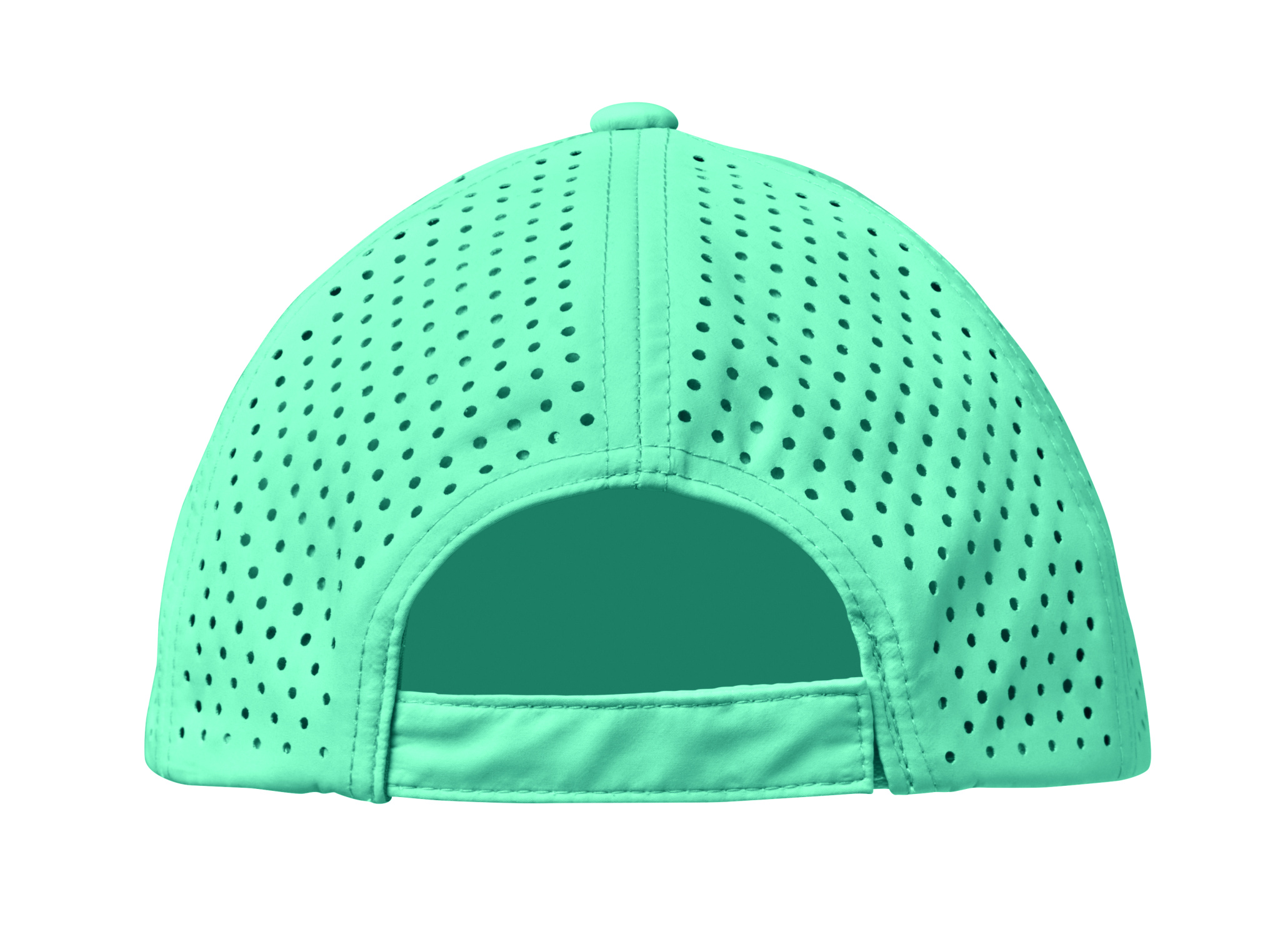 5 paneelista valmistettu polyesterikorkki, jossa on säädettävä koukku ja silmukkasuljin sekä laserrei'itetyt reiät, joissa on 2 ommeltua silmukkaa yhteensopivalla värillä. Tuote on nopeasti kuivuva, hikeä ja vettä hylkivä. 200 g/m²