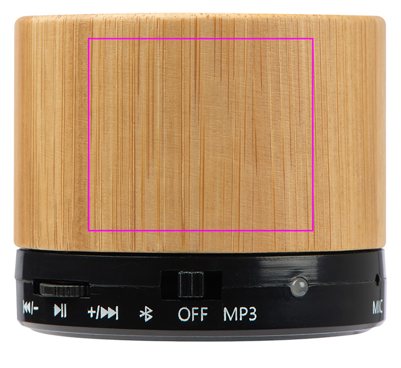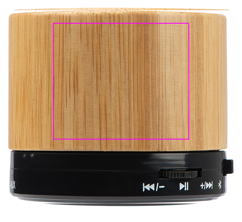 Tyylikäs Bluetooth-kaiutin bambukotelossa, sis. USB-latauskaapeli. Muut ominaisuudet: Micro SD -korttipaikka MP3-tiedostojen toistamiseen, AUX-liitäntä. Akun kesto n. 40-70 minuuttia. Laserimme logosi koteloon.