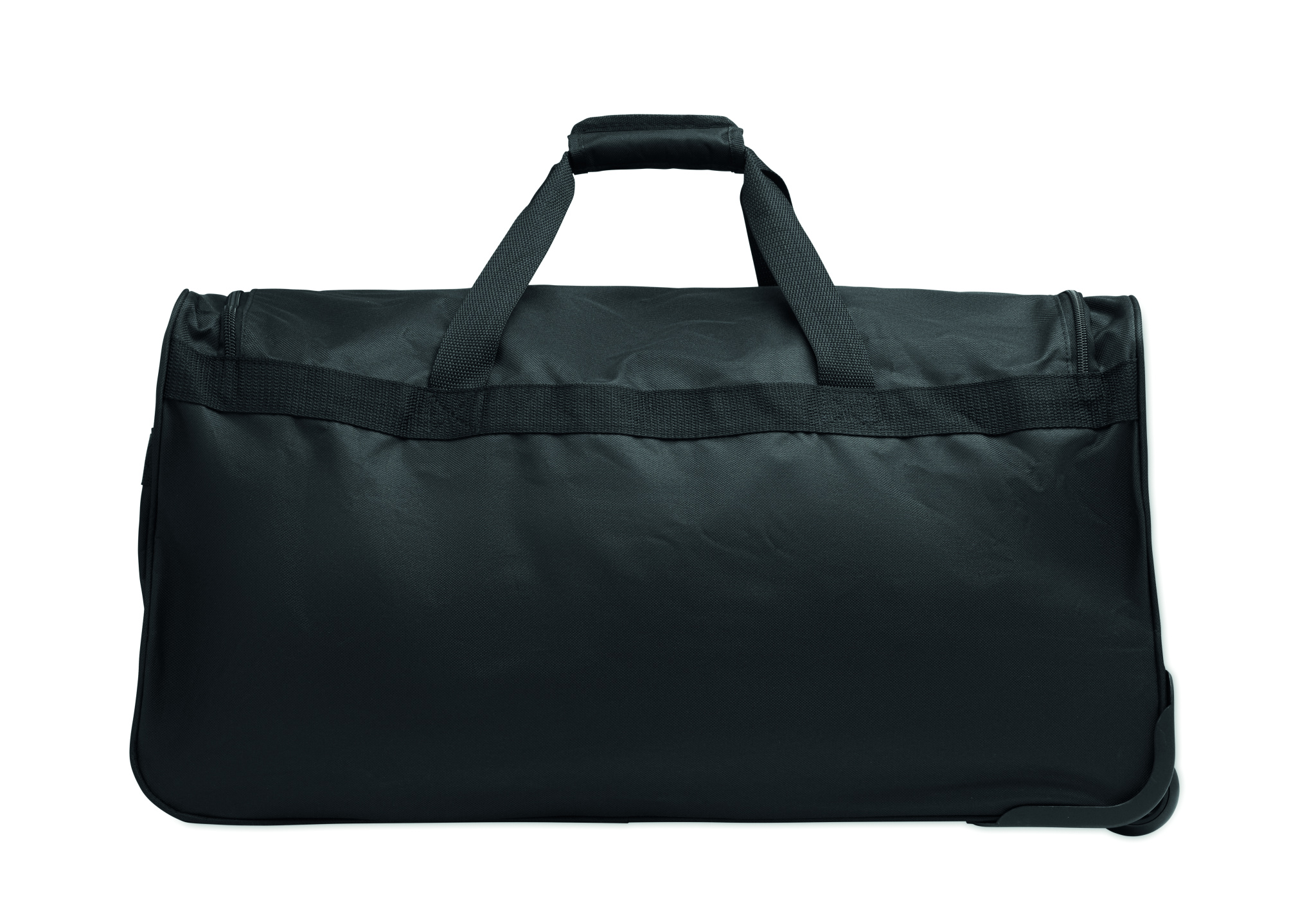 Pehmeä duffeli vetolaukku 600D RPET -materiaalia. Vetoketjullinen etutasku. Kaksi sivutaskua. Kolme sisätaskua. Pehmustetut olkahihnat. Kaksi pyörää ja tuplaputkirunko.