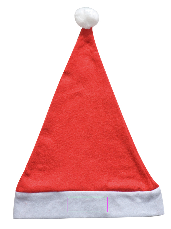 Huovasta valmistettu jouluhattu. Mainosviestisi on silkkipainettu korkin valkoiseen reunaan.