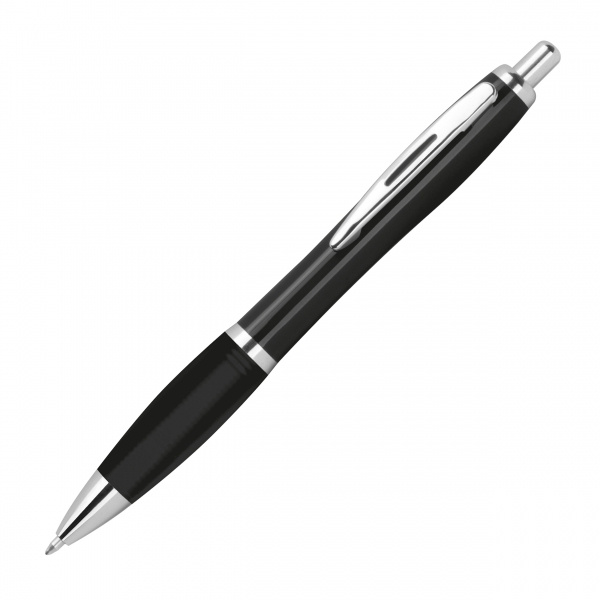 Kierrätetystä ABS-materiaalista valmistettu kuulakärkikynä, jossa on kumipitoalue ja suuri täyttö. Painamme logosi leikkeen oikealle puolelle.