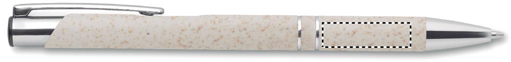 Kuulakärkikynä sinisellä musteella, 50% vehnän olkea ja 50% ABS-muovia hopeaisilla yksityiskohdilla.