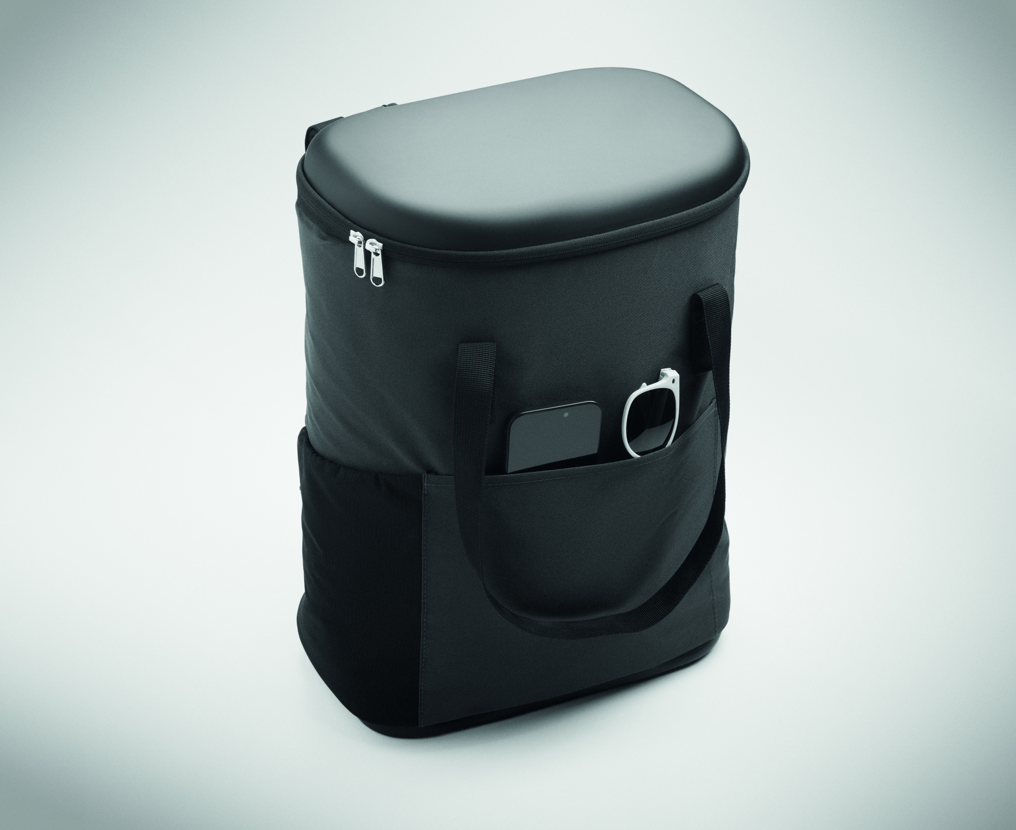 Kylmäreppu vettä hylkivästä 600D RPETistä, PE-vaahdolla ja PEVA-vuorilla. Muotolippa, pehmustettu verkkoselkä, etutasku vetoketjulla ja sivuilla sandwich-taskut. Tilavuus 20 L.