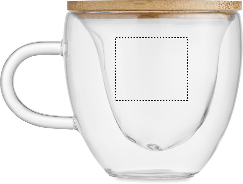Kaksiseinäinen borosilikaattilasimuki sydämen muotoisena bambukannella. Tilavuus: 180 ml.