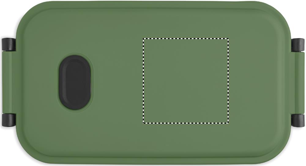 Kierrätetystä PP materiaalista valmistettu lounasrasia, jossa on ilmatiivis kansi, silikoniventtiili ja kaksi sivusolkea. Tilavuus: 800 ml.