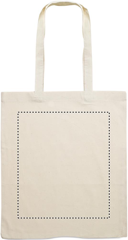 Ostoskassi pitkillä kahvoilla, materiaali luomupuuvillaa, 180 gr/m². Valmistettu EU:ssa