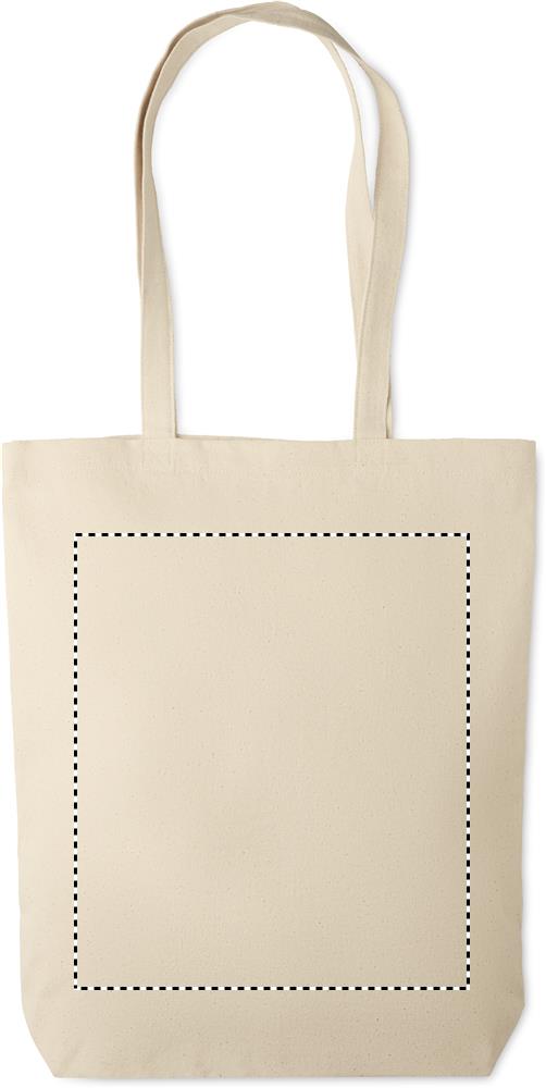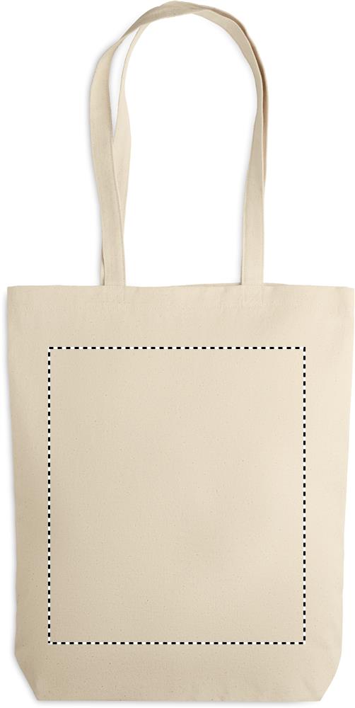 270 gr/m² canvas ostoskassi pohjalevikkeellä ja pitkillä kahvoilla.